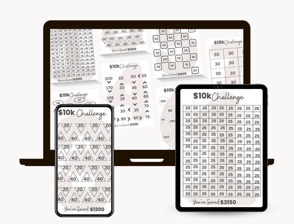A easy-to-use, printable PDF file packed with 7 challenge cards to help you save to $10,000!