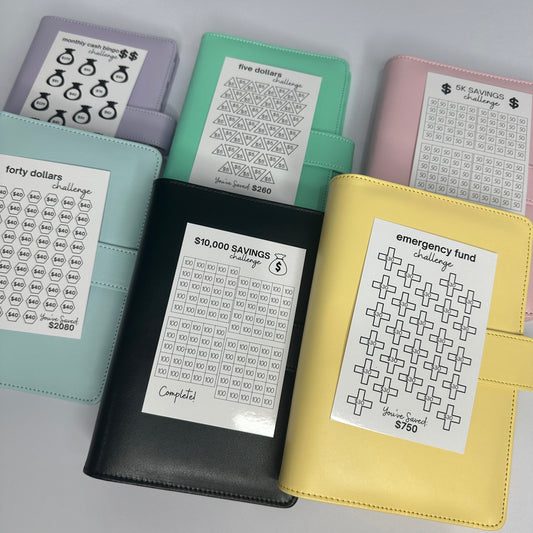 A savings challenge book is a fun and motivating way to build better money habits! Each book includes a variety of savings challenges designed to help you set goals, track progress, and stay accountable—whether you're saving for something big or just want to boost your savings. Simply follow the prompts, complete each challenge at your own pace, and watch your savings grow!